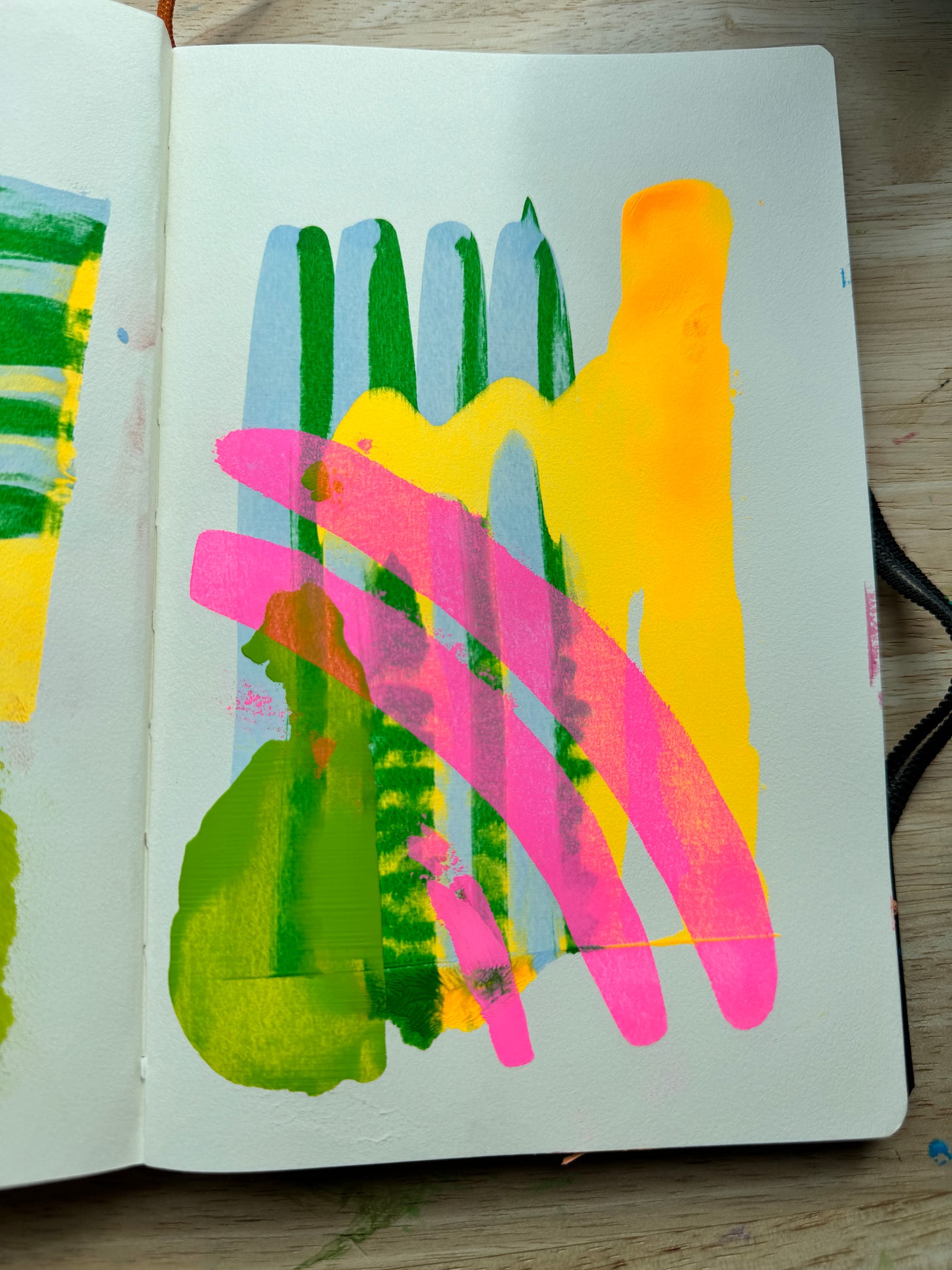 I have a mixed media notebook I use for color pulls. It’s nothing fancy—just blobs of paint smeared around with a plastic ruler. The point is to make a habit out of making.